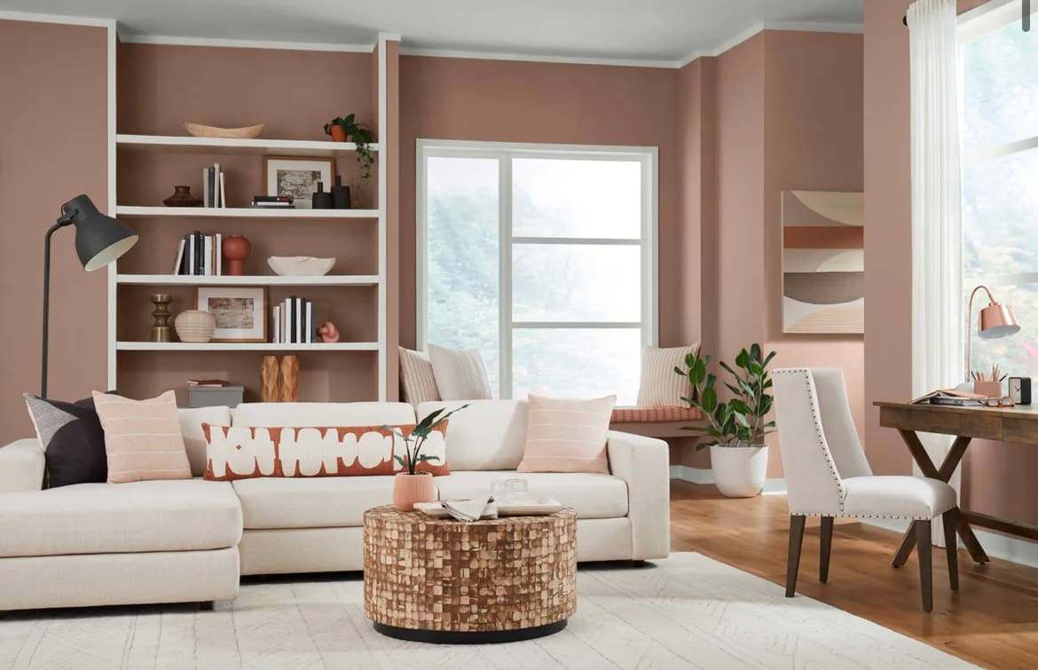 Sherwin-Williams's Redend Point is a dusty blush-beige with an earthy feel that sits at the intersection of neutral and energizing earth tones. This color is both calming and grounding, making it a good choice for a bedroom or meditation space. Its dusty, desert-like feel adds a touch of warmth and texture to a room, making it a great choice for those looking to add a bit of character to their space.